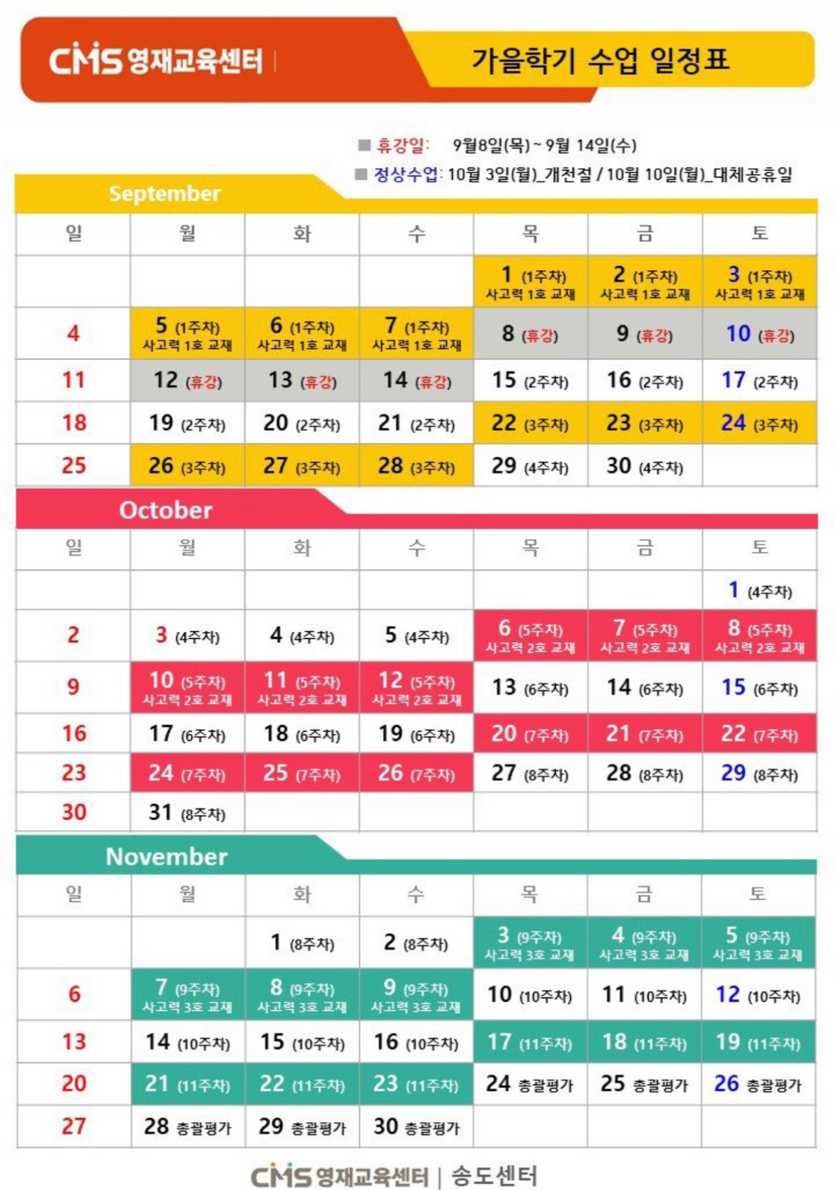 특장점: 씨매스는 창의적이고 재미있는 수업 방식으로 아이들의 흥미를 유도합니다. 실생활과 연계된 문제 해결을 통해 수학적 사고를 발전시키며, 소그룹 수업을 통해 개별 지도도 강화합니다. 송도의 경우, 씨매스는 차량 운행이 됩니다.